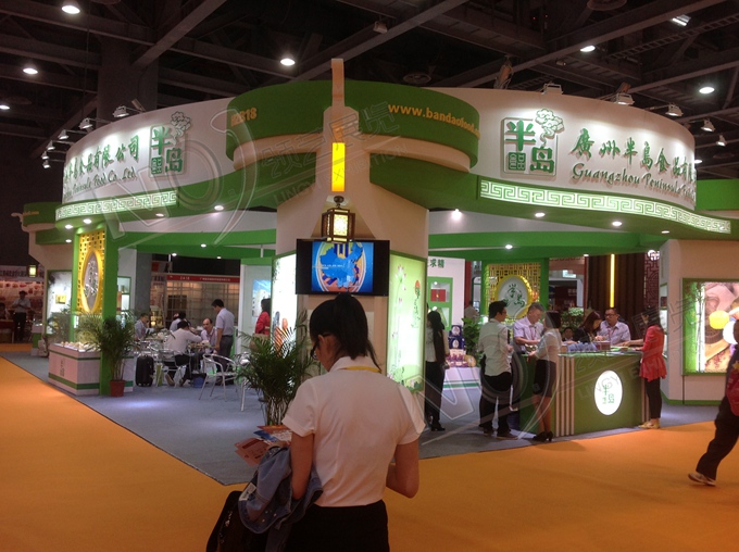 巧妙的運用白色、綠色作搭配,著重突出品牌和產品的展示,使整個展位時尚新穎。